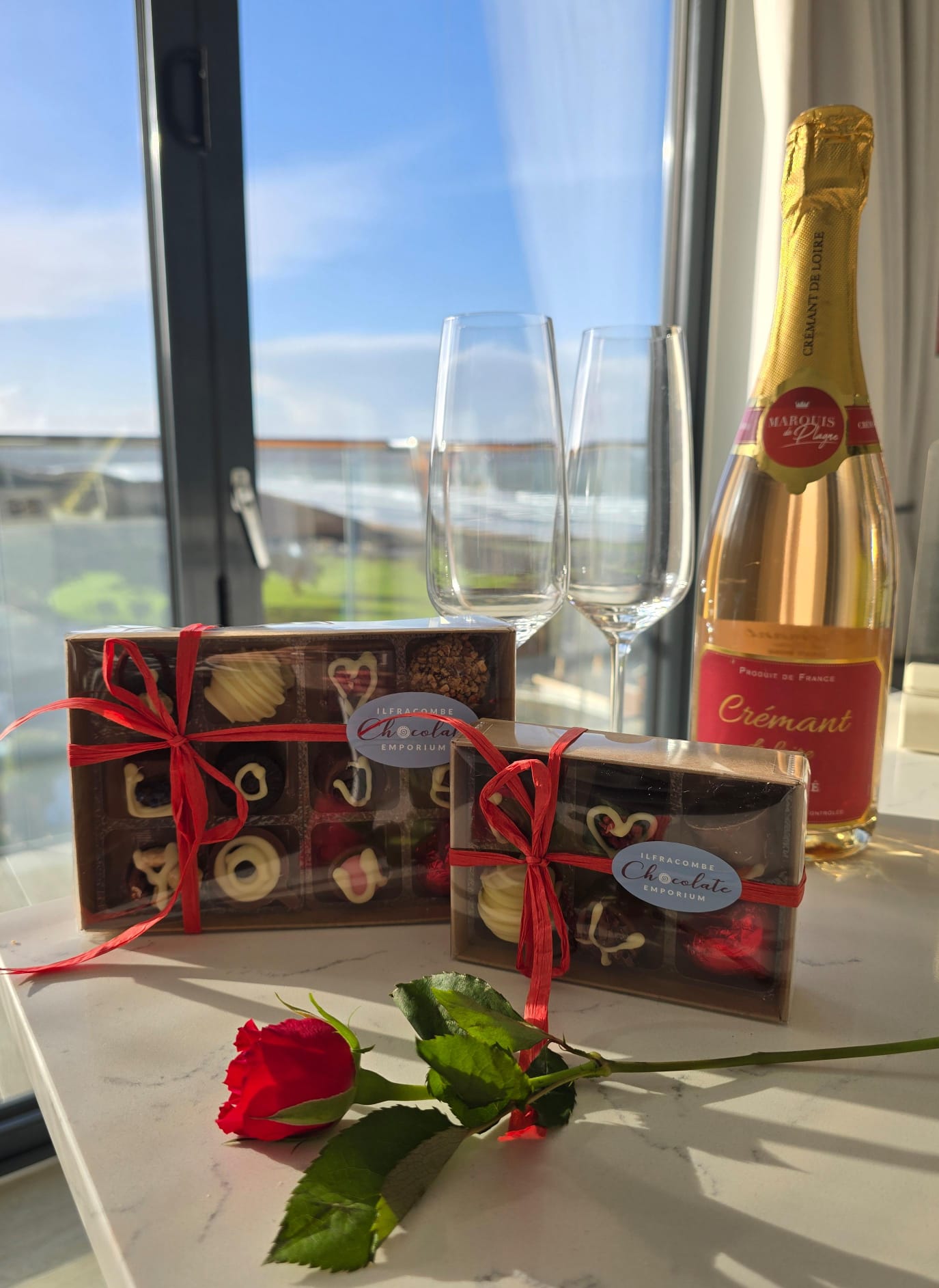 Book your coastal escape using our romantic voucher code and enjoy a complimentary Valentine’s Treat Bundle, including: